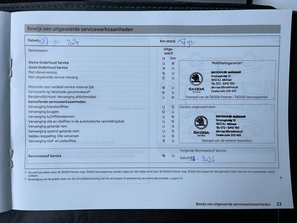 - Onderhoudsboekje aanwezig?