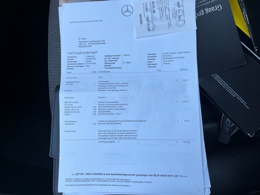 De auto is voorzien van elektrische stoelen met verwarming, 19 inch AMG velgen met 4 nieuwe banden. Dealer onderhouden!