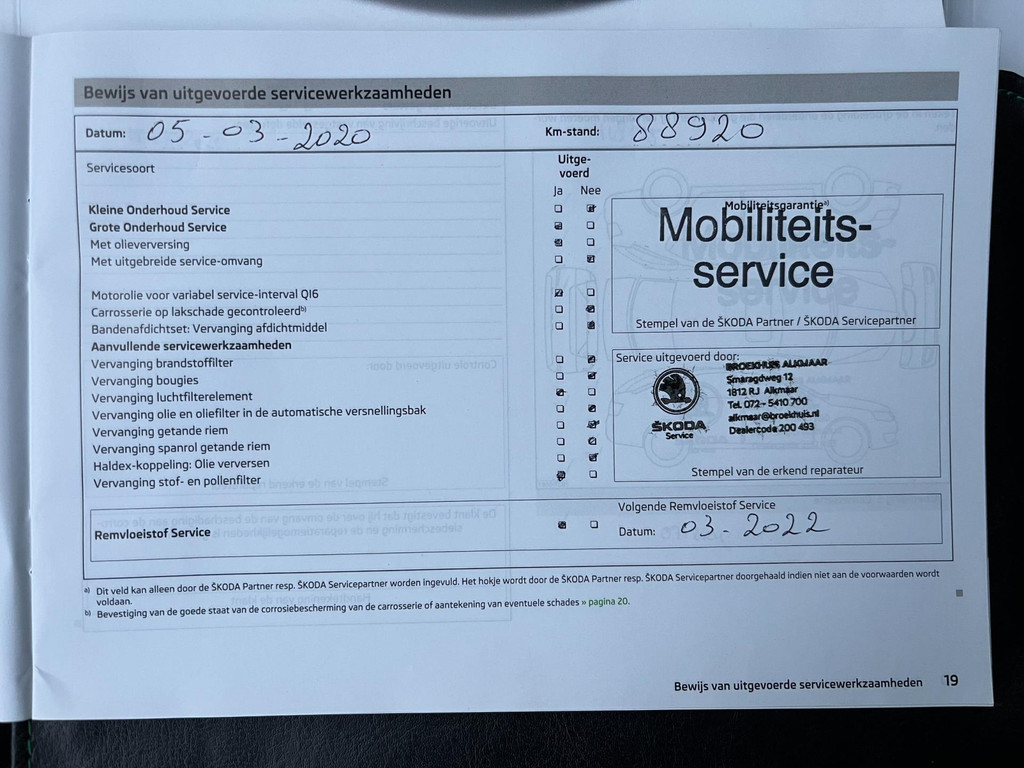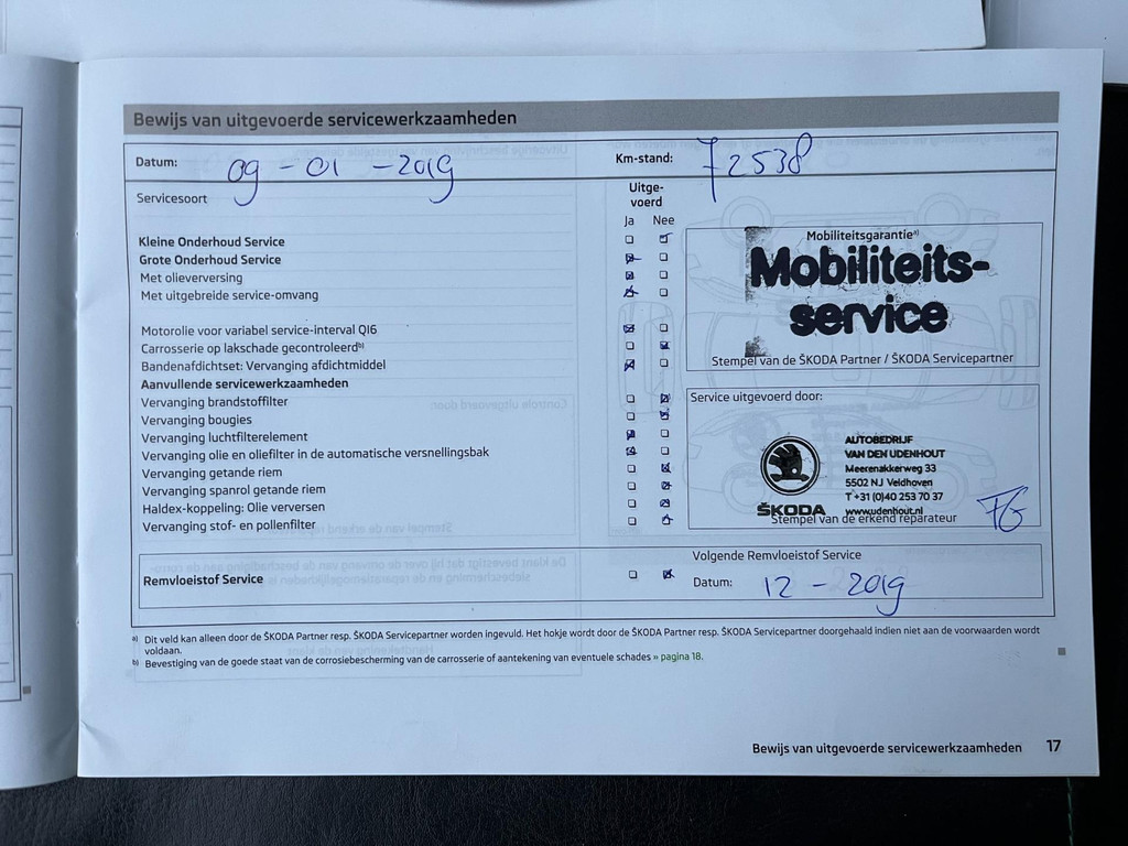 - Onderhoudsboekje aanwezig?