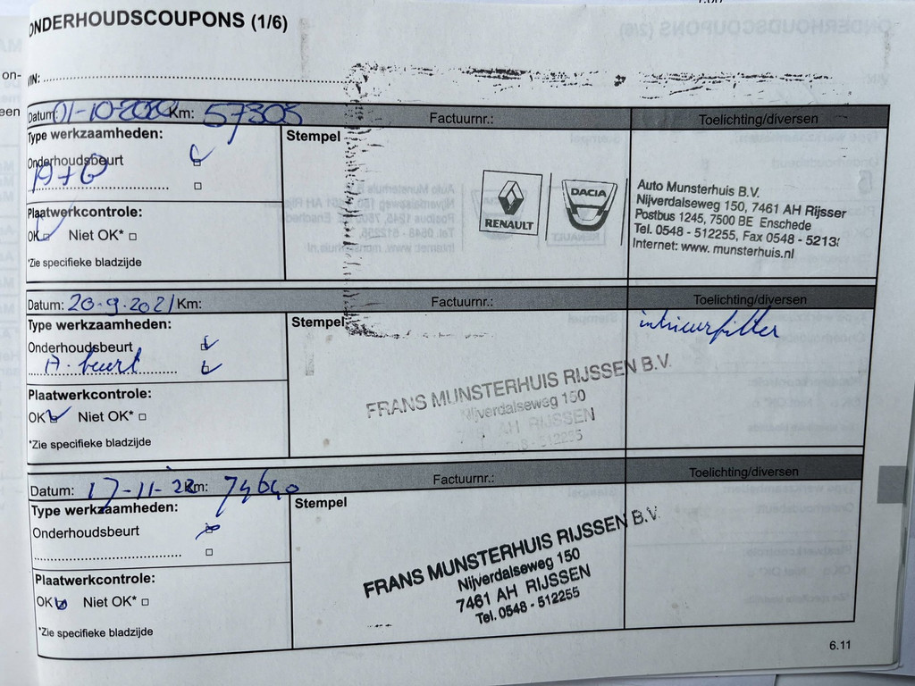 - Onderhoudsboekje aanwezig?
